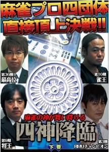 ネット上で伝説の対局と言われた頂上決戦「四神降臨」の模様を収めたDVDの下巻。麻雀プロ4団体の現役タイトルホルダーたちが直接対決し、それぞれの威信と「最強」の看板をめぐって壮絶な闘牌を繰り広げる。※販売:スリアロ 販売代理:アム98