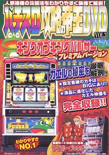 パチスロ攻略雑誌「パチスロ攻略の帝王」がDVD化。プレミア液晶画面なども収録し、雑誌とは一味違った、臨場感たっぷりの攻略法を解説。今作では山佐の人気機種「パルサー」シリーズの最新作「キングオブキングパルサー」をピックアップして紹介する。